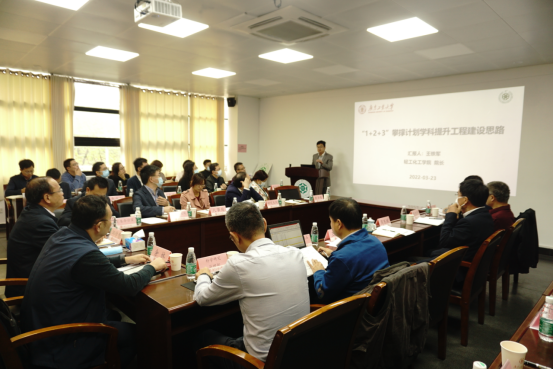 余林副校长介绍了学校对学科建设的支持情况,要求学院瞄准“冲一流”“建设高峰学科”的定位,同时指出要着力解决本科生生源质量、标志性成果、科研成果转化率等方面的存在问题。