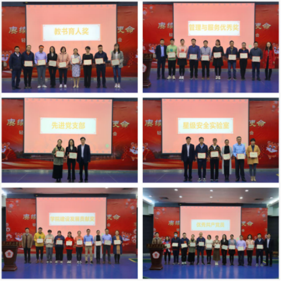 会上,学院对过去一年涌现出的先进集体和个人进行了表彰,共表彰先进党支部2个、优秀共产党员15人、教书育人奖10人、管理与服务优秀奖10人、学院建设发展贡献奖10人、星级安全实验室5室。