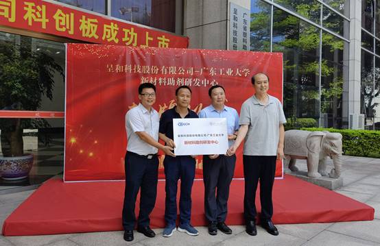 828日上午,新材料助剂研发中心揭牌仪式在白云区广州民营科技园的呈和科技总部举行。呈和科技赵文林董事长、仝佳奇总经理及公司科研、生产负责人与贝勒漫画 余林副校长、贝勒漫画 何军副院长及学院教师出席了揭牌仪式。双方各位代表进行了座谈交流,何军副院长从学院发展历史、学科特色、科研队伍、产学研合作等方面介绍了学院基本情况。仝佳奇总经理介绍了呈和科技的发展历程。呈和科技是一家专业从事聚合物添加剂研发、生产和经营的企业,公司拥有多项自主知识产权及技术储备,着眼于未来的可持续发展,致力于推动中国精细化工产品走向世界,引领行业绿色环保发展方向。公司经过20年在材料助剂行业的深耕和发展,于今年6月正式登陆上交所科创板,展现了雄厚的技术和创新实力。校企双方围绕“材料助剂的应用研究”开展了深度的交流,未来将以研发中心为依托,在成核剂、合成水滑石等高分子材料助剂领域开展创新技术攻关和应用研发,同时进行人才联合培养和互通交流。