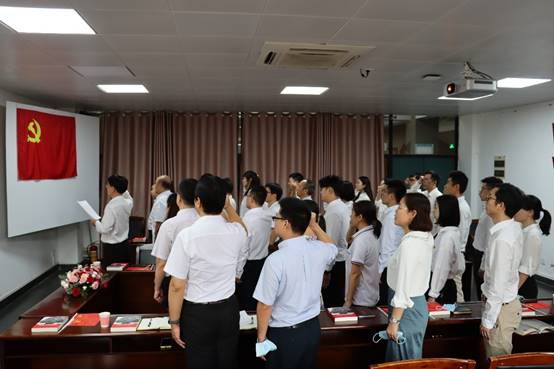 随后,周东斌领誓,王铁军监誓,为今年新入党的两位教师举办入党宣誓仪式。同时,全体与会党员同志一起重温入党誓词,大家紧握右拳,庄严宣誓,在铿锵有力的誓词中继续坚定不移的听党话、跟党走。