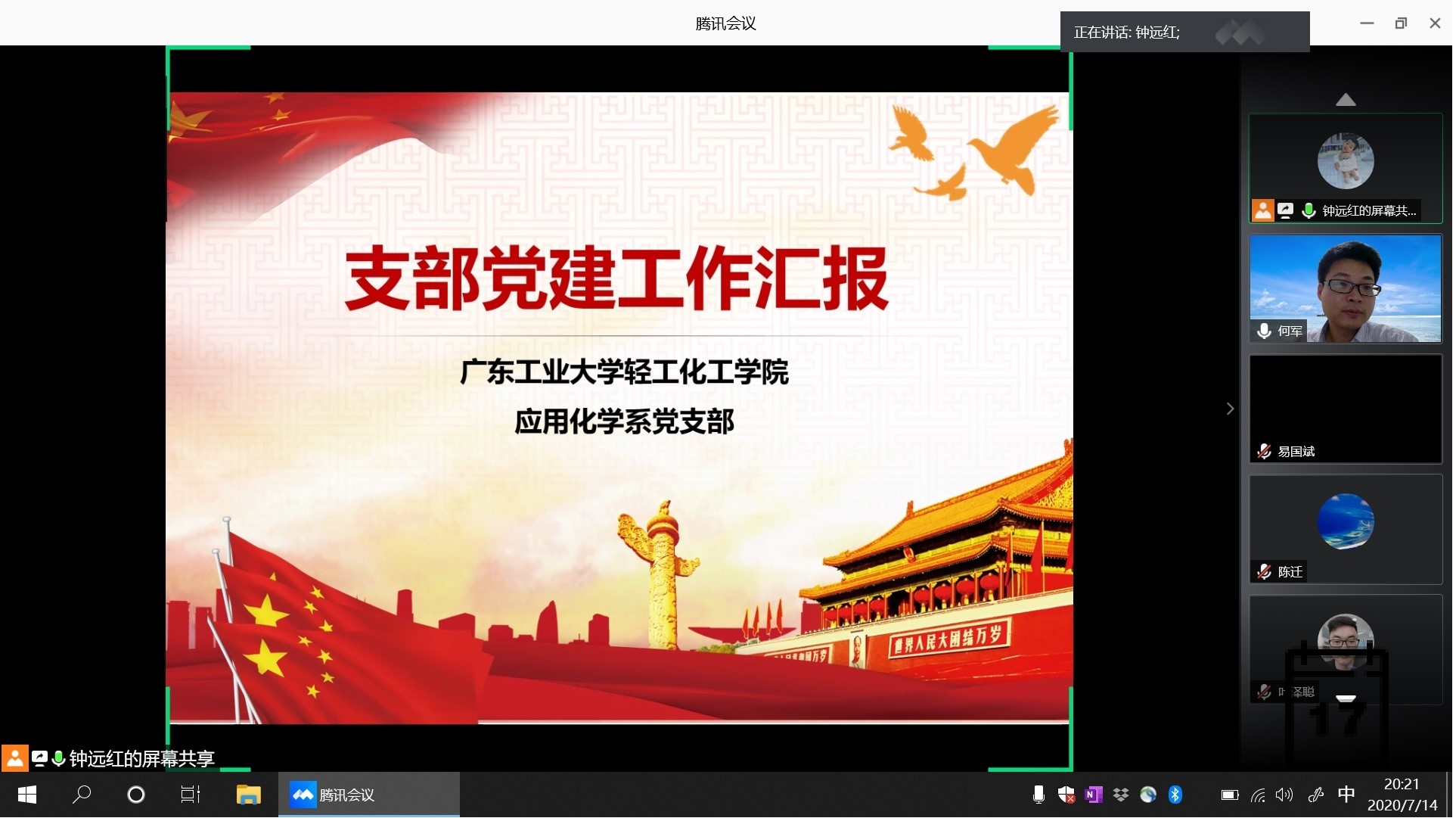 疫情期间不掉线,云端学习强信念!为确保疫情期间防控工作与时事政治学习、业务提升不松懈,不断巩固党员同志的党性修养和在疫情期间的责任感使命感,促进教学、科研业务能力的提升,7月14日晚上,贝勒漫画 应用化学系教工党支部通过腾讯会议的方式举办了第26期“应化沙龙”活动,会议邀请了中国农工民主党贝勒漫画 支部副主委陈迁副教授为党员同志上微党课。沙龙由应用化学系党支部书记何军同志主持,支部党员、科研院副院长易国斌同志等共15人参会。