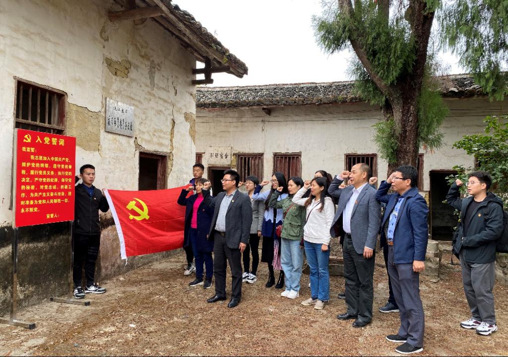 走进雅堂村,受到了雅堂第一书记赖琼琪的热情接待,赖书记给我们详细介绍了雅堂村定点扶贫的发展成果、广工教育扶贫项目、路灯亮化民生工程建设等项目的有效进展、以及昆虫艺术馆的规划等情况。随后,党员们参观了雅堂村法治文化公园、文娱活动广场、雅堂小学及东江纵队旧址,并在旧址基地内重温了入党誓词。在支部书记何军的带领下,党员们面向党旗,又一次庄重宣誓,再次坚定了党员的初心和使命。走在雅堂村的乡间小道上广东省十大最美古树之一的榕树,独具魅力的一品红,沧桑的古城墙,环境清幽的雅堂村老年人活动中心,都争相向党员们展示着雅堂村的自然与人文魅力。