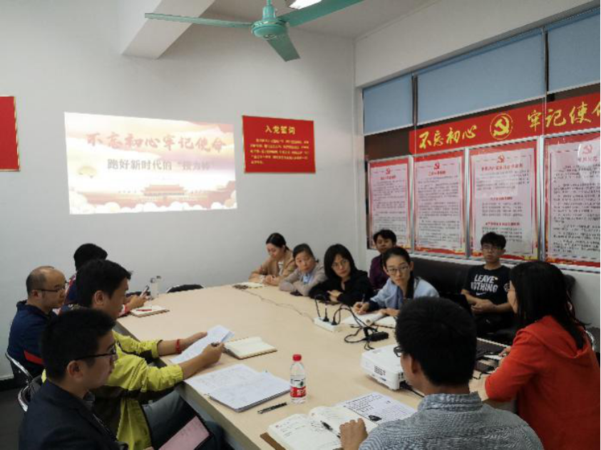 副院长郑育英教授及应用化学系教职工参与了本次活动,应用化学系支部书记何军同志主持会议。