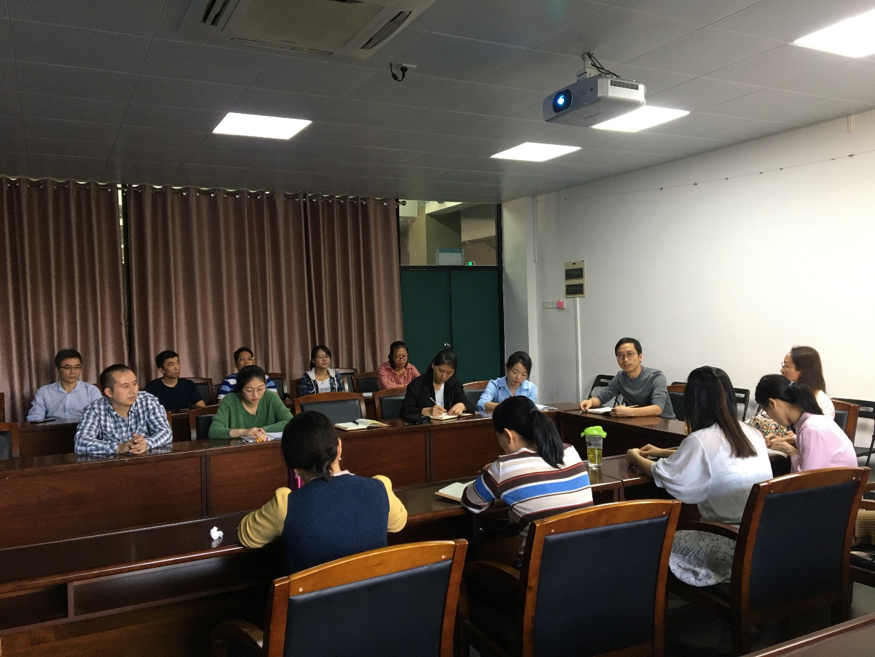 第二次主题教育扩大到实验中心全体老师,首先由郝志峰副院长给大家作了“立足本职工作,爱岗敬业”的微党课。郝副院长先给大家分享了两位爱岗敬业模范人物的事迹:布衣院士卢永根的爱国热情和钻研精神,广工老教授黎鑫的教育热情和奉献精神。接着,郝副院长从四个方面给大家阐述了如何“在平凡的岗位上,做好本职工作”,第一要热爱本职岗位,用“平凡”的心态对待“平凡”的岗位,在“平凡”的岗位做出“不平凡”的工作;第二勇于承担责任,每个人要承担属于自己的责任,要勇于担当;第三加强业务学习,要求我们每个人坚持学习,能更好的为学院的本科教学和科学研究贡献自己的力量;第四保持协作与沟通,只有内部协调沟通好,才能身心愉悦地工作和为学院服务。最后,郝副院长希望全体党员多发挥模范带头作用,多干一点,少拿一点,主动一点,勤勉一点;希望实验中心全体成员共同努力,为学院的学科建设和发展尽自己最大的努力。