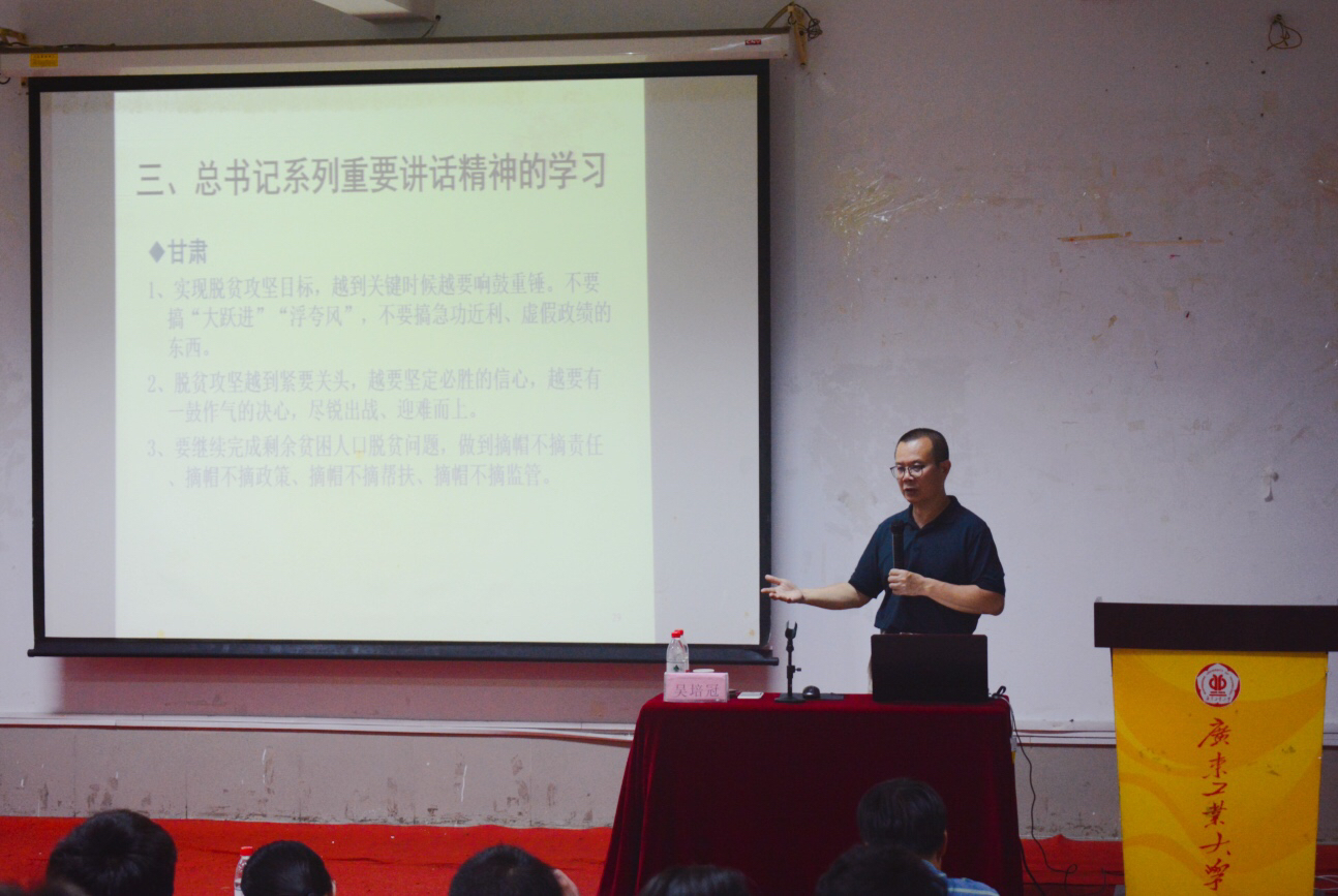 吴培冠教授介绍了全国“两会”相关知识、2019年全国“两会”概况、习近平总书记系列重要讲话精神、政府工作报告学习体会、政协履职与感想等五方面内容。他指出,2018年我国取得了GDP增长6.6%、总量突破90万亿等成绩十分可观但又来之不易,尽管2019年困难不容低估,但我们信心不可动摇,干劲不能松懈,相信在以习近平同志为核心的党中央坚强领导下目标一定能实现。吴教授结合参会和工作实际,他用“新”“准”“高”三个字为大家详细讲解自身政协履职情况和参会心得体会。报告主题鲜明、内容丰富、精彩生动,让与会师生对于全国“两会”精神有了全面的认识和更为深刻的理解。