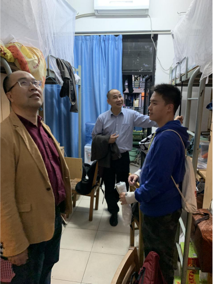 党委副书记邱伟青、生物医药学院党委副书记张智以及学院辅导员毛元渊、林文杰老师走访了学生宿舍。