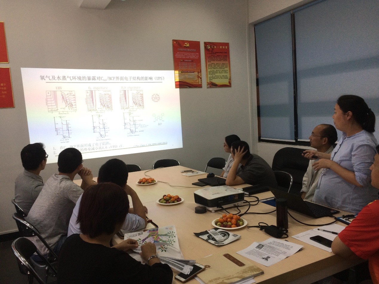 应化系青年百人杨庆旦副教授以 “界面电子结构对有机光伏器件性能的影响”为主题做报告,重点介绍了借助紫外射线光电能谱和X射线光电子能谱,在超高真空条件下(基压10-10 Torr)研究有机光伏材料在界面之间的相互作用及界面电子结构变化对器件性能的影响,从而提高器件的光电转化效率及长期稳定性,以期解决制约有机光伏器件商业化的瓶颈问题。