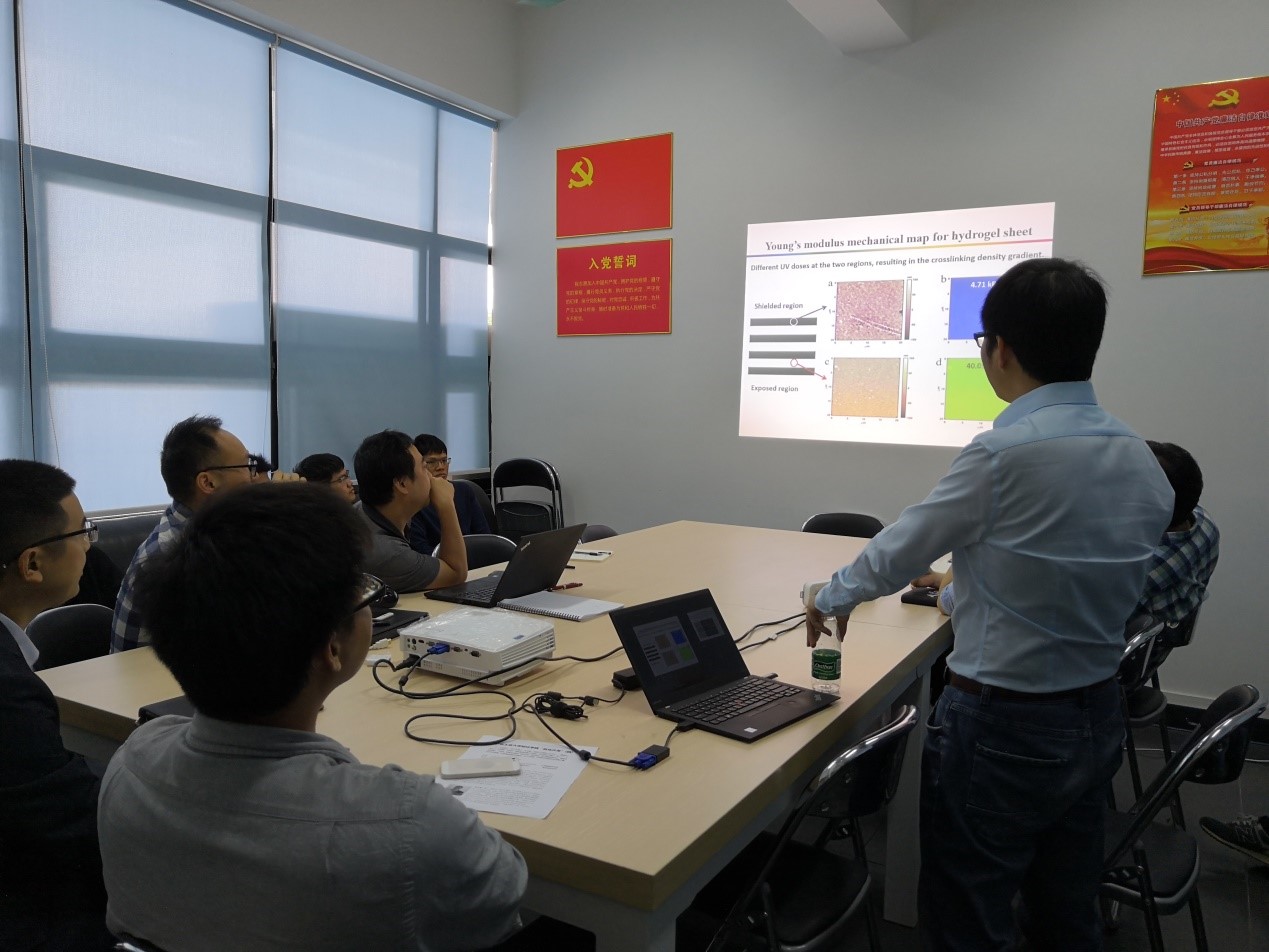 首先,中国科学院深圳先进技术研究院仿生智能材料课题组组长杜学敏研究员给大家做了题为Bioinspired Sensing and Actuating Materials”的报告,重点介绍了起源于大自然(如含羞草、变色龙)的灵感、结合化学合成与微纳制备的仿生聚合物,被特定溶剂(丙酮)、近红外光和温度触发后,能够相应地改变其形状。基于这一领域的迅速进展,他认为生物激励聚合物在可穿戴和可植入器件中有广阔的应用前景。