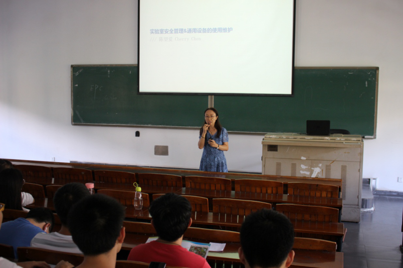 随后,德国IKA广州分公司培训师陈望爱给新生进行实验室安全培训。培训内容主要包括常见试剂管理及实验室通用设备的使用及维护。