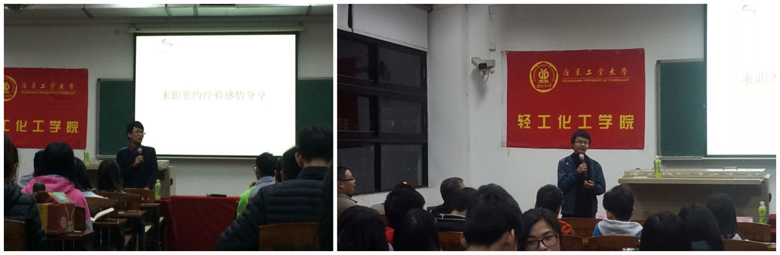 2016届毕业生代表钟思龙、叶铭书2位同学,分别分享了求职签约经验感悟,以自身经历着重谈了个人见解、教训挫折和经验做法,并建议一定要保持积极心态,未雨绸缪,提前做好相关准备,并及时总结,终能脱颖而出。