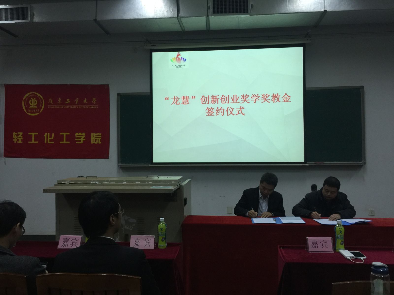 学生创新创业工作的大力支持,希望轻化学子以符总为榜样,涌现出更多不忘母校、反哺母校、与母校共谋发展的杰出校友。方院长随后与符总分别作为院企双方代表共同签署了“龙慧”创新创业奖学奖教金协议书。