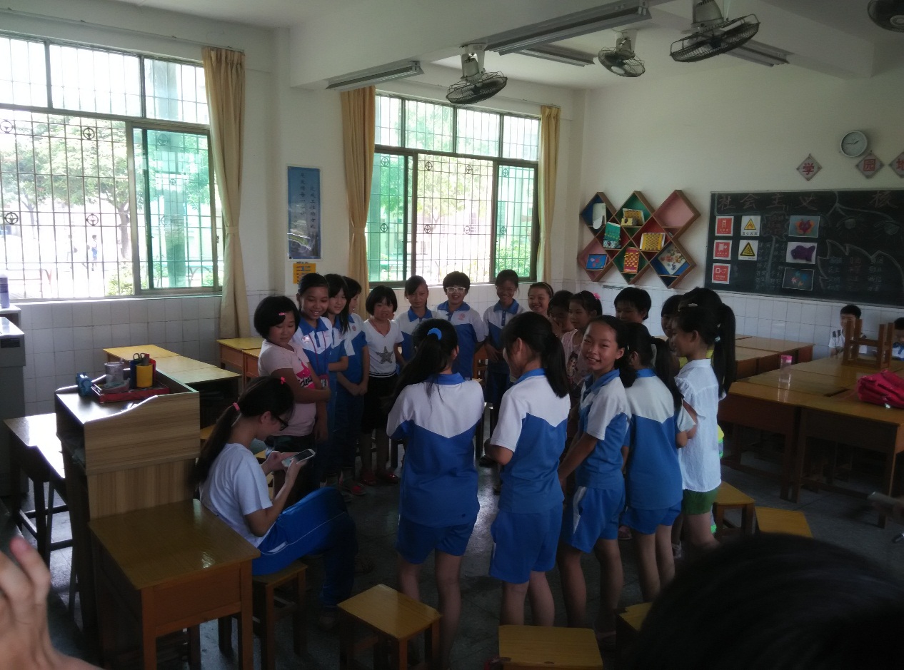 参加本次支教活动的小同学们分为四年级和五年级两个班,今天早上在两个班分别进行着民俗文化和历史两门课程的教学。民俗文化课主要介绍了广西壮族自治区和台湾这两个地区极具特色的文化;而历史课则讲述了朝代频更、跌宕起伏的中国古代史,和从频遭外侮到建国雄起的近代史。课堂上,老师们用诙谐通俗的言语讲授了知识,同学们也听得津津有味。下课后,年轻的“老师们”和同学们就上课的内容进行热烈的讨论,同学们也询问了老师们来这里后一些生活上的问题。期间有一些送学生来学校的家长也跟队员们攀谈。热心的家长们十分关心队员们的生活问题,就此提出许多建议。