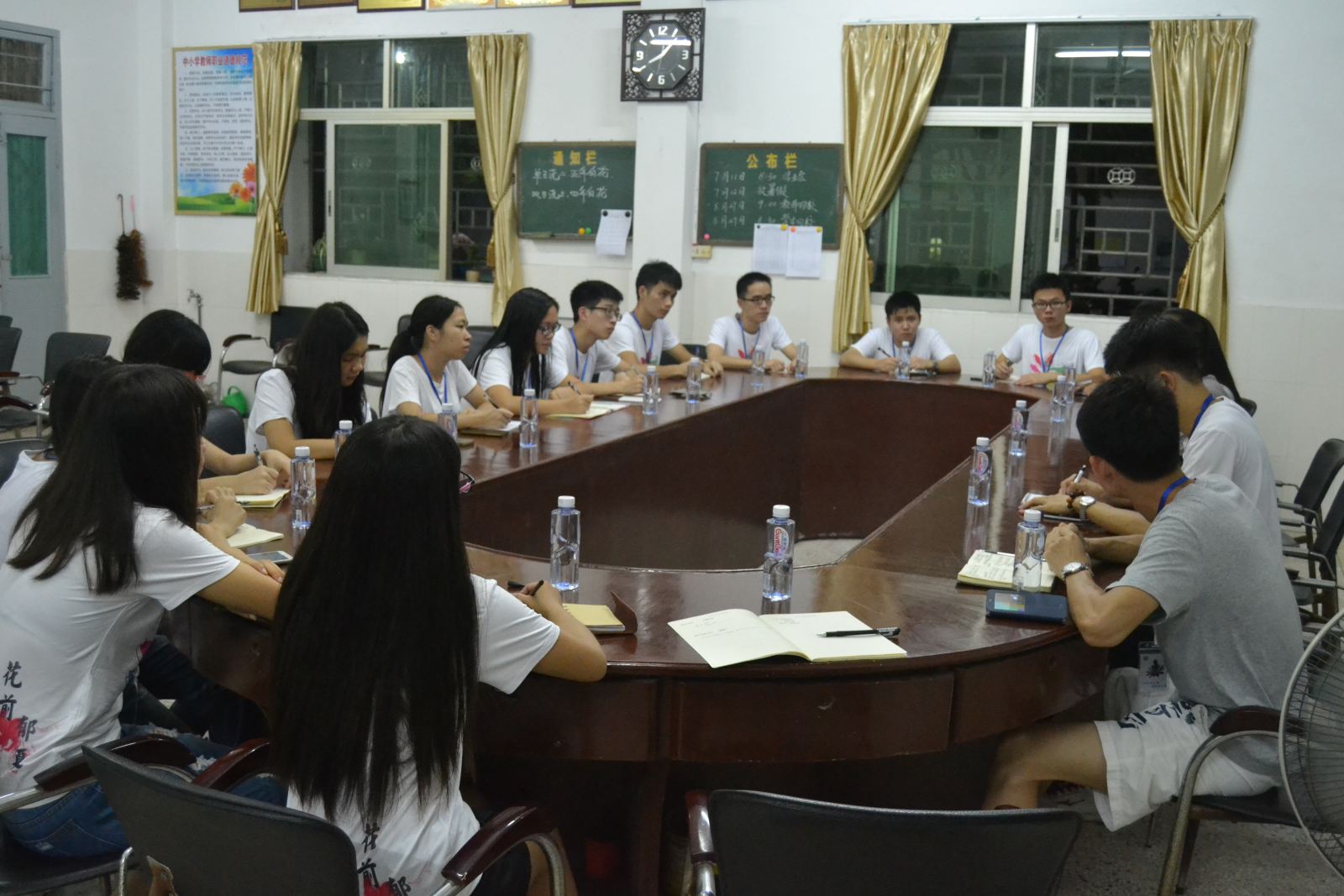 实践队全体成员稍作休息后,在队长的带领下和维则小学的副校长见面座谈,双方进行了充分沟通,商定了暑期实践的具体工作。经了解,维则小学是当地的一所重点小学,学校在软、硬件方面都投入了巨资。学校拥有优秀的师资力量和校园风气,学生在各项比赛中都获得了十分优秀的成绩,在最近的朗诵比赛和舞蹈比赛中,还代表学校参加了区甚至是市里的比赛。每间教室都配有先进的多媒体设备,还有舞蹈室、美术室、电脑室以及大礼堂等。会后,黄副校长带领我们参观了学校课室以及大礼堂等功能室,亲身教导队员们使用多媒体设备,并表示希望队员们在教学过程中能够充分利用这些设备,对我们此行期望满满。