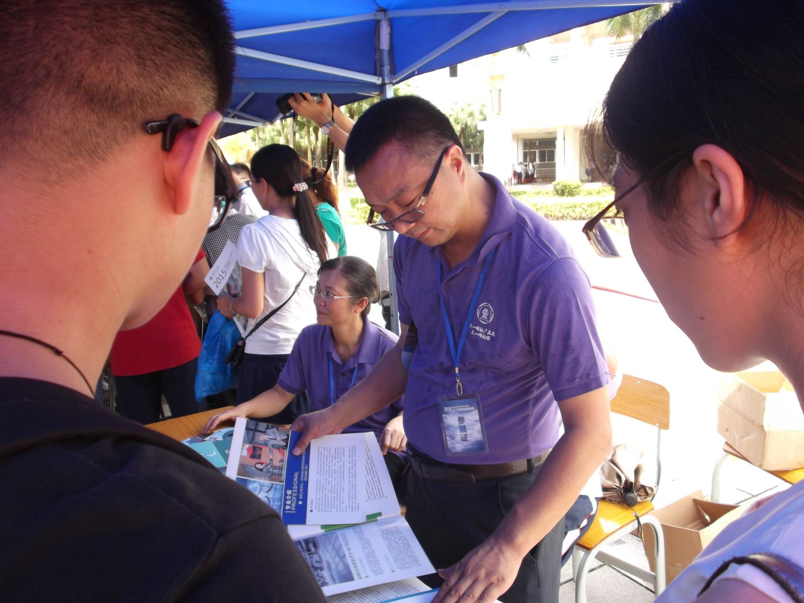 杜志云副院长、材料与能源学院英健文副书记、外国语学院辅导员王荟荃老师组成的宣传组开赴江门职业技术学院参加2015年普通高等学校招生江门市现场咨询会。