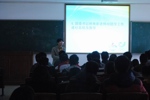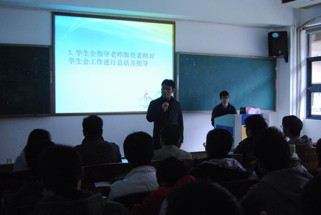 会上,学院团委副书记谢润锋同学和学生会主席李彦霖同学分别从组织建设、校园文化、创新创业和社会实践这四方面回顾了团委一学期以来的工作,并指出了其中的不足,针对这些不足提出了建议和规划。团委书记林焕章老师、学生会指导老师郭亮肯定了这一年来团学各部门在工作中所付出的努力和取得的成绩,也提出一些做得不足的地方,同时对新学年的工作提出了新的希望,他们希望学院团委学生会能够树立学院品牌意识,加强学院团委学生会自身队伍的建设,完善团学组织中的各项制度,创办学生喜闻乐见的活动,引导同学们培养和践行社会主义核心价值观理念。