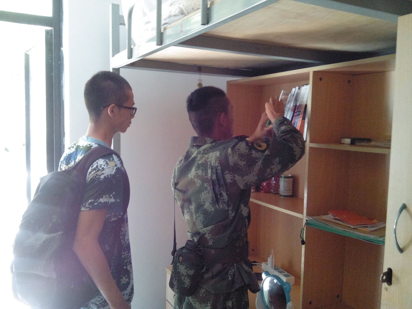 各排教官结合我校学生寝室的结构,像学生们介绍不同用品的分类和摆放,并亲自做示范,严格的规整寝室物品,为学生打造一个干净整洁的宿舍而做了详细的说明。同学们在认真听取教官的说明后也依照教官的要求做了相应的调整,为班级的其他同学做好带头作用和榜样,以便今晚收操后做最好的示范。