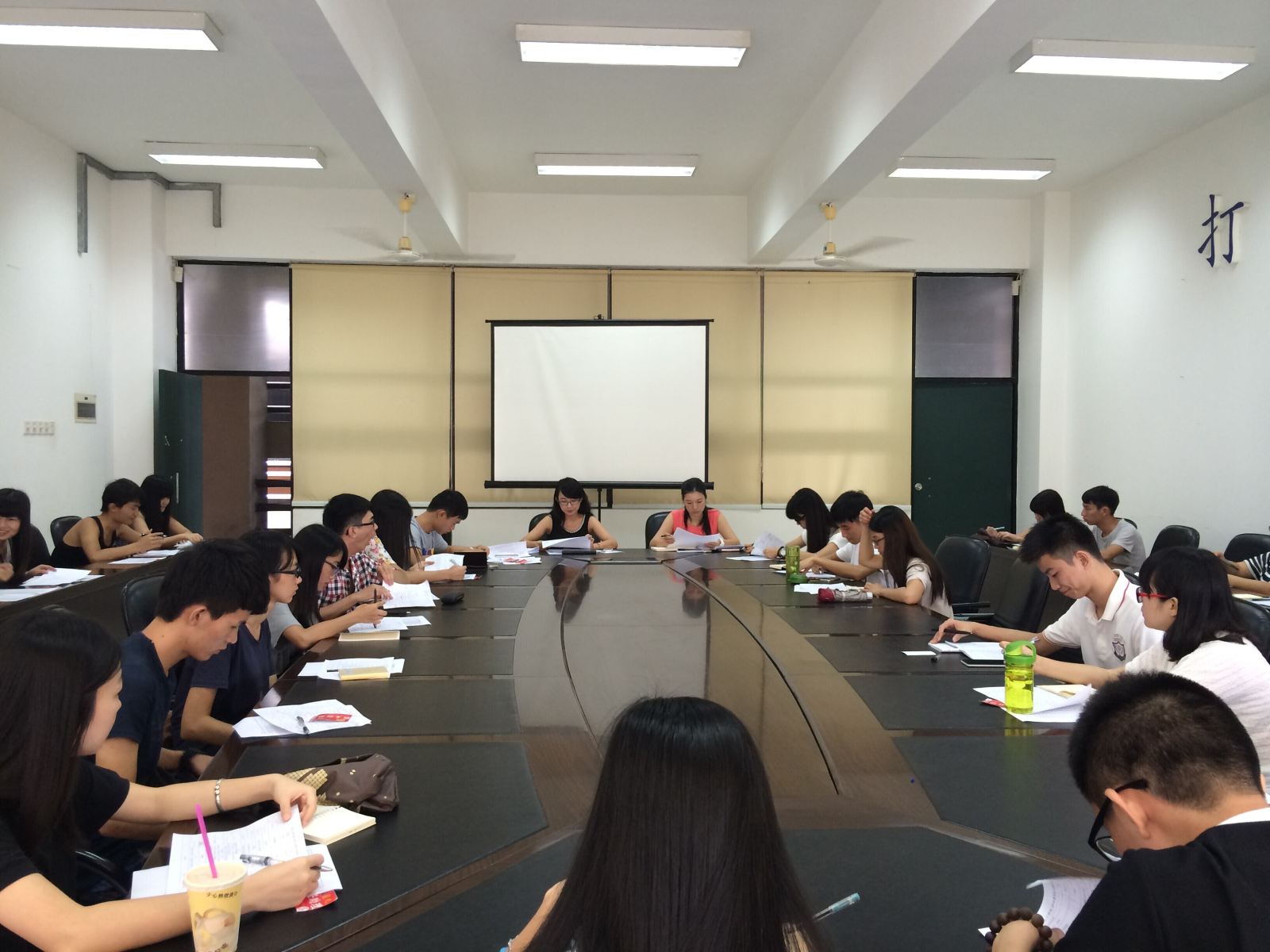 会上,张明老师首先就助理 班主任工作职责和要求进行了相关培训,她希望各位助班能够以身作则,以饱满的精神状态投入迎新工作中,引导新生更好地适应大学生活,给予新生正面的引导和影响,真正做到新生学习的模范和师生沟通的桥梁; 接着,张明老师向在场的助理班主任讲解《2014级新生入学教育日程安排表》,并提示助班在新生入学时提醒新生注意人身财产安全,以免意外情况发生,给新生报到带来不必要的麻烦。随后,毛元渊老师详细布置了迎新当天的工作,针对新生群体中存在的问题与诉求,她希望各助班予以归类和总结 ,及时与班主任、学院进行反馈与沟通,确保校园生活的和谐与稳定。