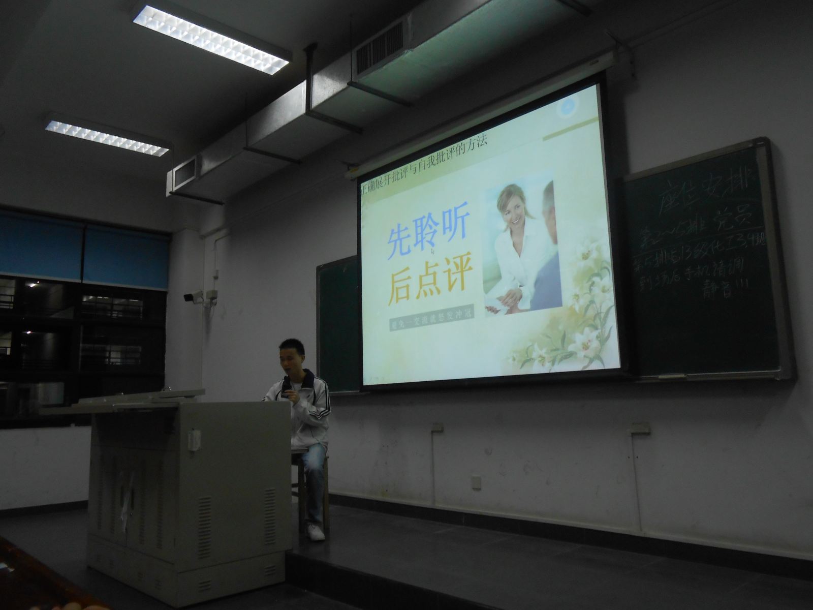本次党课的主题是“批评与自我批评”。张炜同学以现场开展批评与自我批评的形式进行了互动式授课。他首先进行自我批评,对自己在过去两年来存在的不足进行检讨,并以具体案例分析的形式委婉地批评了学生党建在工作过程中的不足,建议学生党建工作应多与基层党支部、团支部沟通交流,了解基层的意见,对学院各党支部组织生活和工作流程提出了宝贵的建议。同时,他还建议同学们应做到“吾日三省吾身”,学生干部应带头自我批评,形成有利于开展批评与自我批评的浓厚氛围。罗泳彬同学则围绕主题向大家阐述了开展“批评与自我批评”的意义、态度、方法和应把握的原则,在方法上应该“先表扬后批评、公开表扬私下批评、先调查后批评、先聆听后点评、控时间忌唠叨、只对事不对人、多启发少责备”;在原则上应该把握“目标原则、主动原则、公开原则、适度原则、艺术原则”五大原则,开展批评与自我批评要注意把握时间,选择适当的时机;把握空间,选择适当的场合;把握对象,因人而异;把握情感,以情动人;把握语气,以诚待人。