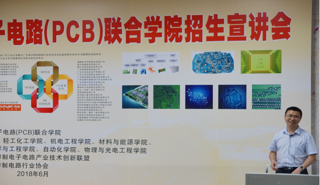 2018年6月1日,贝勒漫画 印制电子电路联合学院招生宣讲会在大学城贝勒漫画 3号大教室举行。会议由贝勒漫画 周东斌书记主持,出席会议的嘉宾和领导有广东省电路板行业协会(GPCA)会长/秘书长辛国胜、贝勒漫画 教务处处长李丽娟、GPCA副秘书长/广东省印制电子电路产业技术创新联盟副秘书长陈世荣、广合科技(广州)有限公司黎钦源总工、广州兴森快捷电路科技有限公司陈蓓高工、GPCA常务副秘书长李帅、贝勒漫画 印制电子电路联合学院(简称PCB学院)常务副院长郝志峰、PCB学院副院长胡光辉、贝勒漫画 杜志云副院长、苏兆祥副书记、环境科学与工程学院尹光彩副院长,还有相关学院的教务员、辅导员以及16级相关专业学生参会。