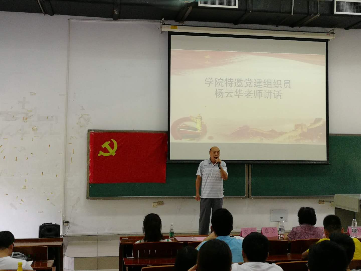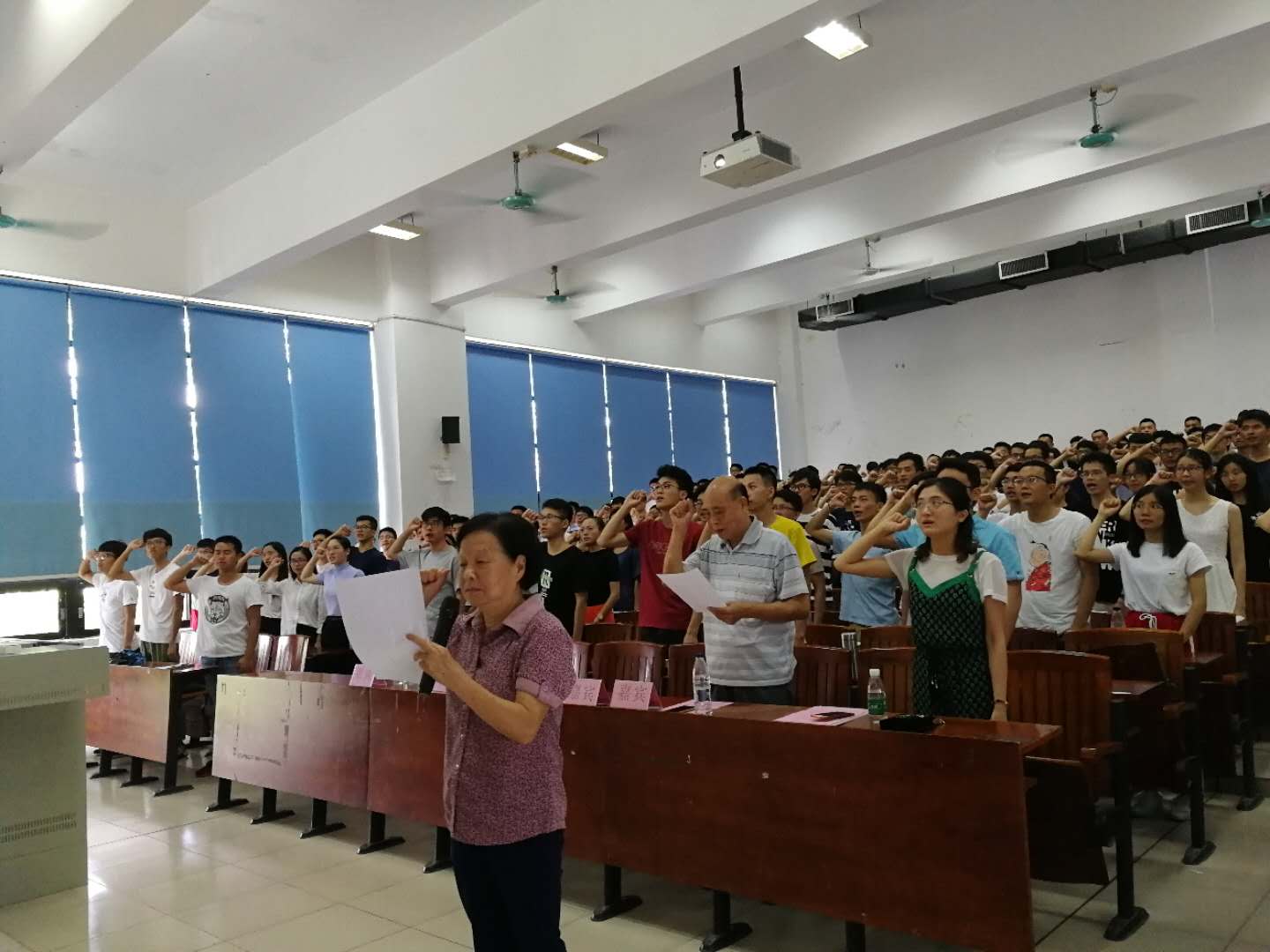 会议伊始,全体人员起立,奏唱国歌,庄严的国歌响彻整个会场,拉开宣誓大会的序幕。国歌奏唱完毕,宣誓大会正式开始。首先是学院特邀党建组织员杨云华老师讲话杨老师谈到入党誓词代表着每个共产党员入党的忠心,重温入党誓词内容也是我们每一位党员同志不可忘怀的初心。他强调了入党誓词对共产党员有着明确的要求,起到约束、鞭策共产党员的作用杨老师希望全体党员能够以此为标准严格要求自己,不忘初心,砥砺前行,做一名合格党员。