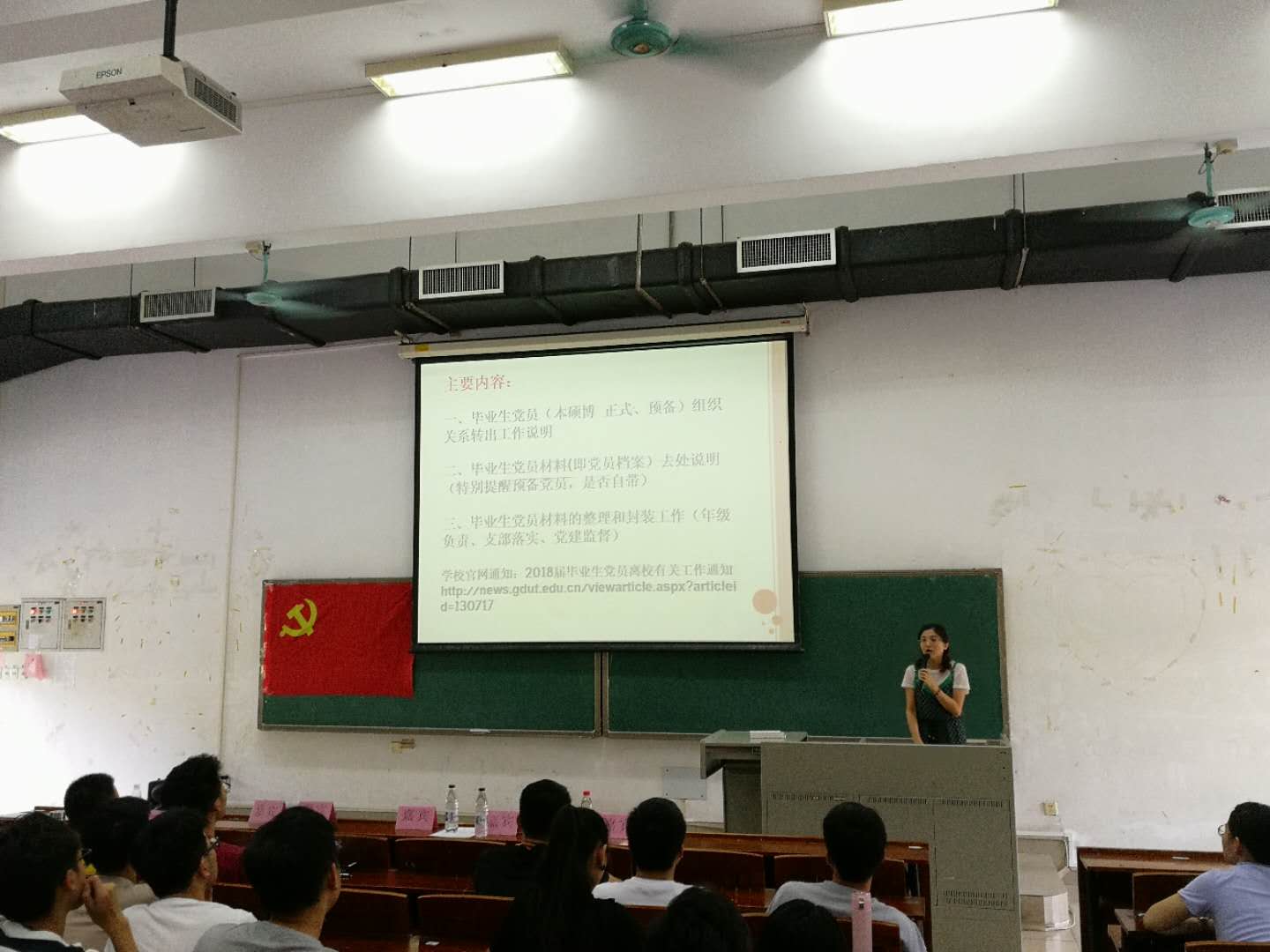 宣誓大会结束后,紧接着召开毕业生党员文明离校工作会议。魏老师主要从毕业生党员转出组织关系工作具体操作说明,毕业生党员档案去处说明,以及毕业生党员档案整理与封装工作三个方面进行讲解,强调全体毕业生党员要重视组织关系转接工作,要主动保持与党组织的联系沟通,跟进转接工作落实到位。