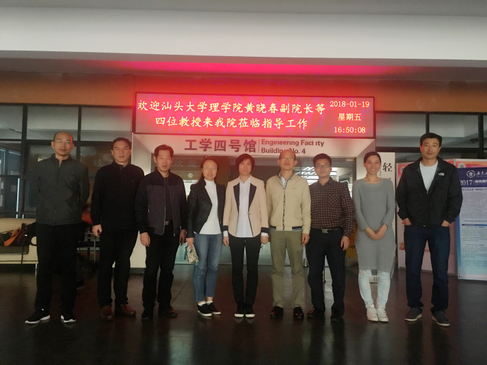 2018年1月19日下午,汕头大学理学院由理学院副院长黄晓春教授带队,理学院工会主席、化学系党总支书记方奕文教授,化学系主任鲁福身教授和化学系教学主任宋一兵教授来到贝勒漫画 ,与贝勒漫画 应用化学系老师们,就共同关心的如何加强专业内涵建设,明确专业特色,提升专业办学质量等问题,互相交流并交换意见。贝勒漫画 郝志峰副院长,成晓玲系主任,何军系书记,潘春阳老师等应用化学系老师们列席交流座谈会,会议由郝志峰副院长主持。