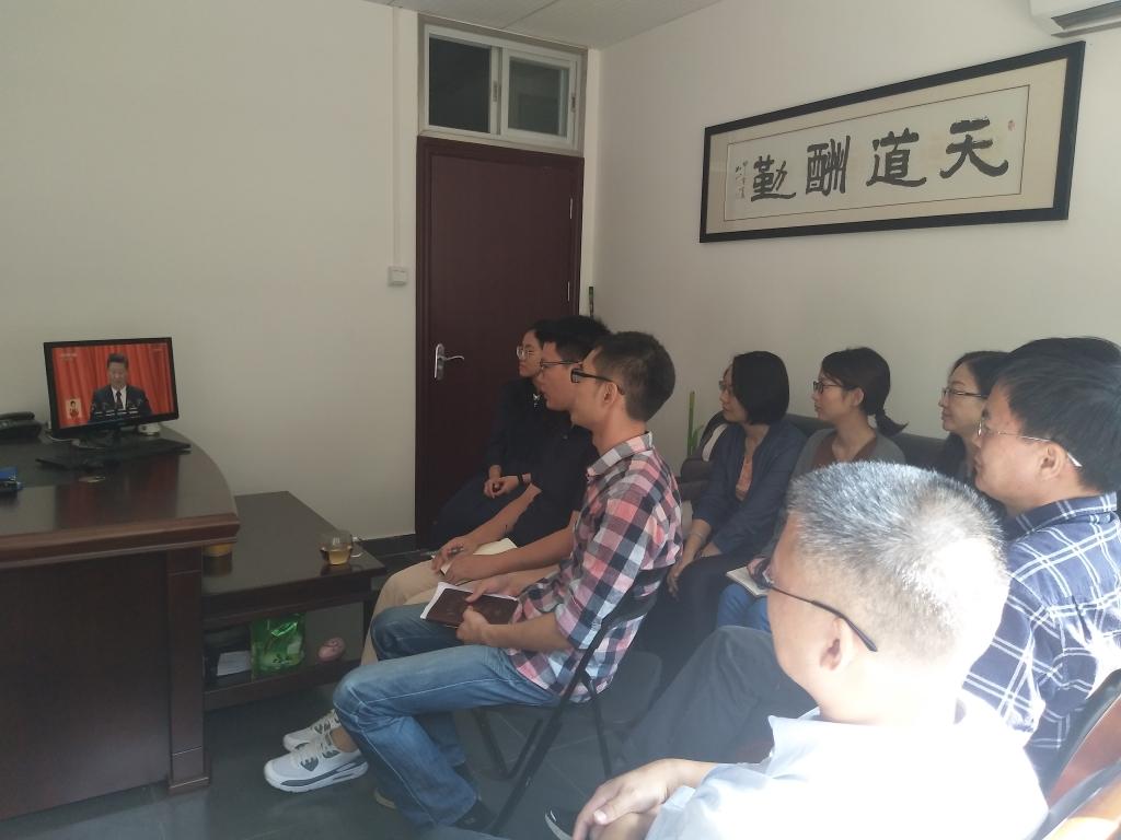 党委组织教工师生在各个办公室集中收看十九大开幕会直播盛况。
