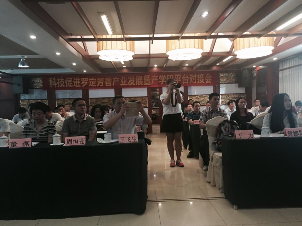党委书记周东斌、食品工程系主任于泓鹏副教授、系支部书记刘晓丽副教授、香飘三创(产学研)众创平台创始人吴克刚教授,还有罗定市肉桂、八角生产加工企业的负责人及技术人员,罗定肉桂协会、合作社负责人以及罗定市农业局、林业局以及肉桂种植乡镇的分管领导及农技站长70多人与会。