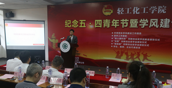 优秀教师代表罗洪盛老师分享了指导大学生创新创业项目的心得和收获,他勉励同学们珍惜和平、安定的环境,以弘扬 “爱国、进步、民主、科学”的五四精神,积极投身科研。